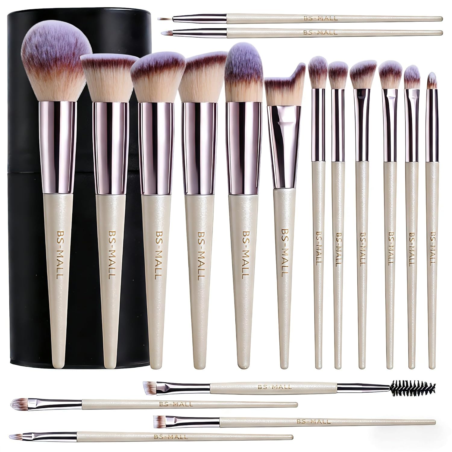 18-piece synthetic brush set for flawless, quick grooming and easy travel